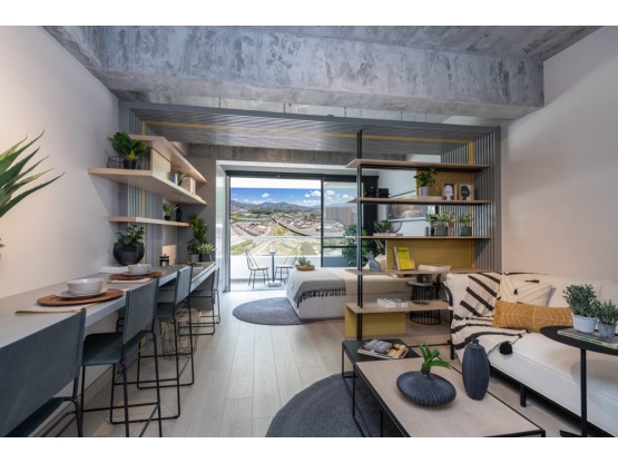 Apartaestudio Sabaneta sector Euro 77 Sur a pocos metros de la Estación del Metro de La Estrella, 44.25 metros, comedor-estudio, salón-estar, cocineta, lavatraperos,espacio para lavadora y balcón. Cuenta con excelentes zonas comunes o de esparcimiento: zona coworking, lavandería, gimnasio para cardio,sala de juntas, zona BBQ, terraza café-bar, yoga al aire libre, paqrueaderos y locales comerciales.