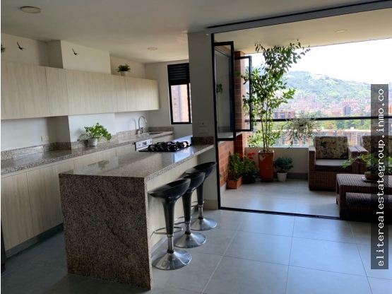 2 alcobas c/u con baño, amplio vestier, jacuzzi, baño social, 2 balcones con hermosa vista a la ciudad, cocina integrada al balcón, zona de ropas independiente, closet de linos, parqueadero, cuarto útil. Estrato 5.